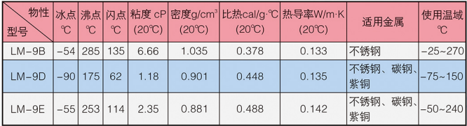 LM-9系列冰河冷媒由多官能團有機物改性而成,外觀為淺色液體,不溶于水,可燃。具有粘度低、揮發(fā)性小、防銹性好、化學性質(zhì)穩(wěn)定等特點。