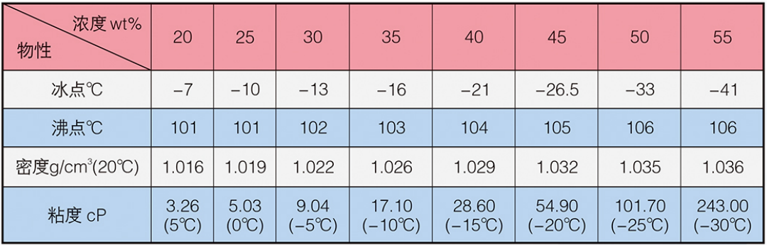 LM-4A型冰河冷媒由改性二元醇構(gòu)成,主要添加劑包括防腐蝕劑,防霉劑,增溶劑、水穩(wěn)劑等。外觀為淺色液體。安全無毒、無異味、不易揮發(fā)。20°C時密度為1.04g/cm³,比熱為0.56cal/g·°C,粘度為15.9mPa·s(cP),熱導率為0.21W/m·K。沸點高于130°C,冰點低于-50°C,閃點為100°C。